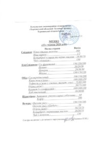 Posted on 11.06.2020 / 0 / domrebenka З метою забезпечення відкритості та публічності інформації щодо якості харчування надаємо фото-звіти. Кількість осіб, що харчуються –61дітей, з них до року –7дітей. Вартість дня харчування –3740,08грн. Харчування