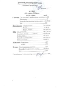 Posted on 13.08.2021 / 0 / domrebenka З метою забезпечення відкритості та публічності інформації щодо якості харчування надаємо фото-звіти. Кількість осіб, що харчуються – 58 дітей, з них до року – 19 дітей. Вартість дня харчування – 3226,05грн. Харчування