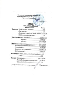 Posted on 29.06.2021 / 0 / domrebenka З метою забезпечення відкритості та публічності інформації щодо якості харчування надаємо фото-звіти. Кількість осіб, що харчуються – 60 дітей, з них до року – 20 дітей. Вартість дня харчування – 2911,45 грн. Харчування