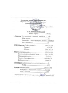Posted on 25.11.2019 / 0 / domrebenka З метою забезпечення відкритості та публічності інформації щодо якості харчування надаємо фото-звіти. Кількість осіб, що харчуються – 56дітей, з них до року – 10дітей. Вартість дня харчування –2877,83грн. Харчування